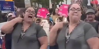 In Chicago, a video was taken of a Chicago public school teacher imitating Charlie Kirk being shot in the neck. The slob has been identified as Lucy Martinez, a teacher at Nathan Hale Elementary School in Chicago's West Beverly neighborhood. The footage captures Martinez laughing and pretending to be shot in the neck while surrounded by other protesters. A passenger in a pickup truck, which displayed a flag calling the late conservative activist Charlie Kirk a "hero," recorded the video. The driver of the truck reportedly received gestures from the demonstrators, including from Martinez.